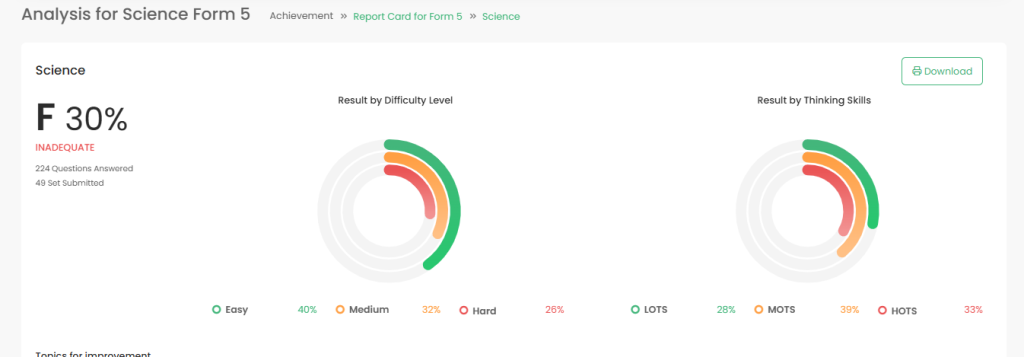 Dengan data ni, anda boleh tentukan topik mana yang patut diberi penekanan dalam membuat latihan yang lebih banyak, tanpa membuang masa.