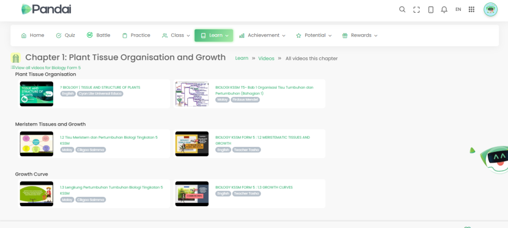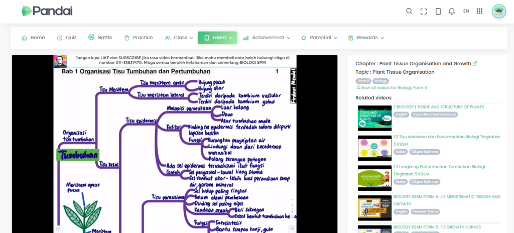 Dalam Pandai App, ada video pembelajaran pendek dan ringkas untuk bantu anda faham dengan cepat. Video ni sesuai untuk ditonton semasa otak anda dah tak larat untuk baca nota panjang. Video-video yang terkandung semuanya mudah untuk difahami dan ringkas.