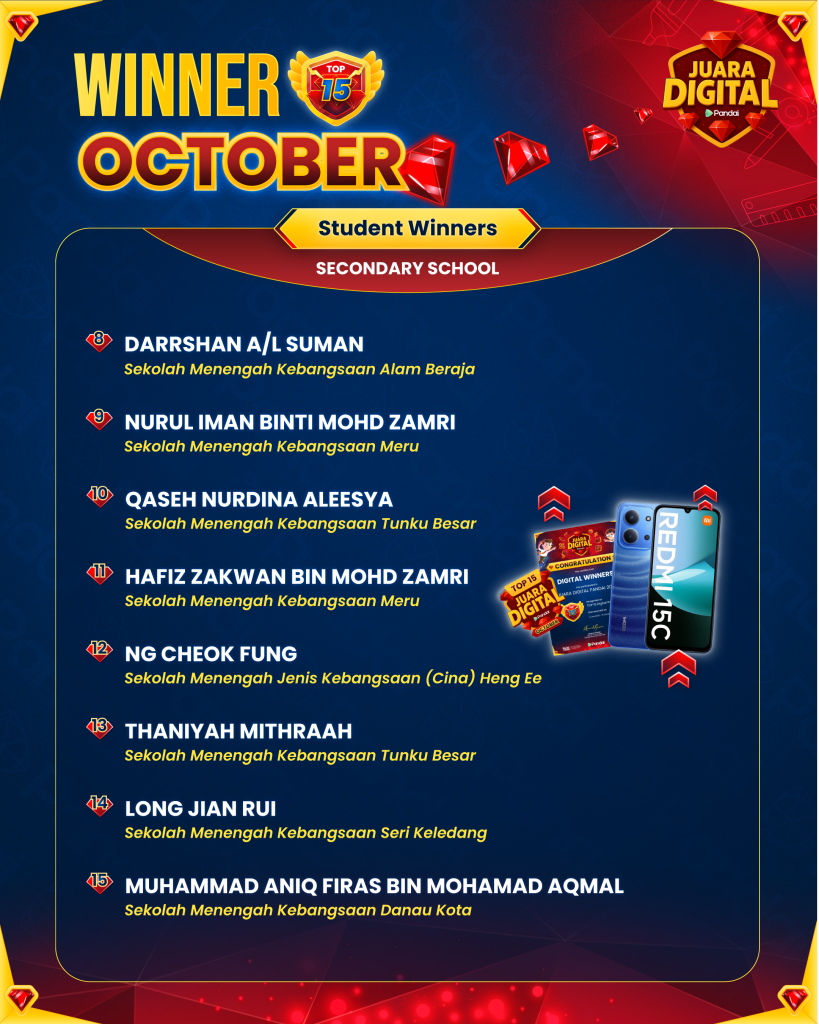 Congratulations to all participants of Juara Digital Pandai (JDP) October 2025! After months of learning, competing, and collecting Rubies, the moment we’ve all been waiting for has finally arrived: