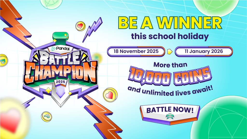 This time, you can chill, play, learn and WIN prizes with the Pandai Quiz Battle Campaign! From 18 November 2025 to 11 January 2026, the leaderboard is open, the stakes are higher, and the prizes are waiting. Get ready for special rules, extra coins, and brand-new weekly winners!