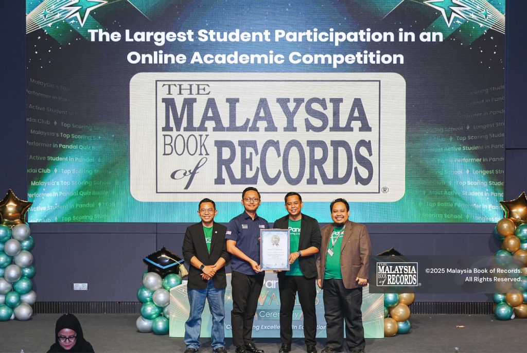 Pandai Education turut mencatat satu pencapaian membanggakan apabila Malaysian Book of Records mengiktiraf Pandai bagi kategori penyertaan pelajar terbesar dalam pertandingan akademik dalam talian.