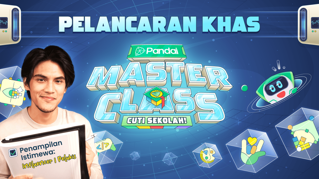 Memperkenalkan Pandai Masterclass Cuti Sekolah!. Pandai Masterclass Cuti Sekolah ialah program 3 minggu untuk pelajar Malaysia berusia 7–17 tahun mempelajari kemahiran dunia sebenar seperti Coding, Gen AI, Creative Design, Drawing dan Bahasa Isyarat.