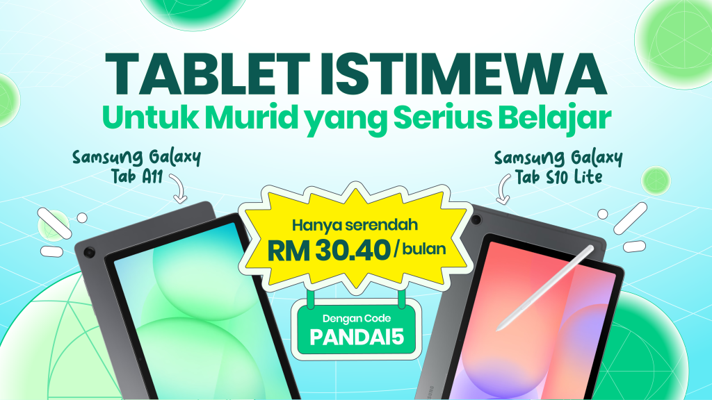 Melalui tawaran ini, ibu bapa tidak perlu lagi membuat bayaran besar secara sekaligus. Sebaliknya, tablet Samsung boleh dimiliki melalui pelan langganan bulanan yang lebih fleksibel. Promosi kembali ke sekolah ini diwujudkan bagi membantu keluarga menyediakan peranti pembelajaran digital dengan lebih terancang dan mudah diurus.