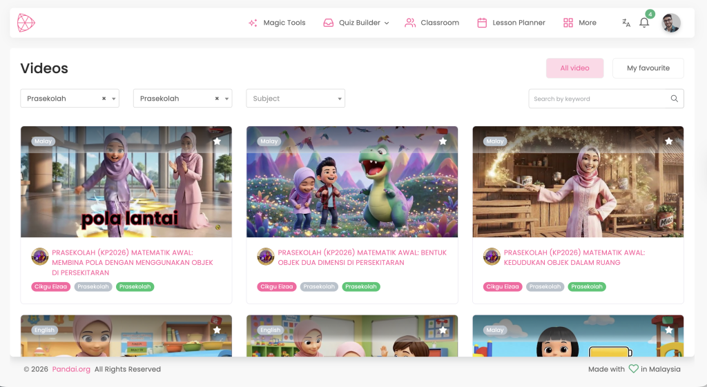 ✅ Langkah 3: Terokai Koleksi Video Kurikulum Prasekolah 2026