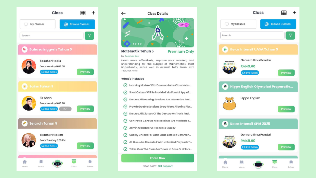 Simply log in to your Pandai Premium account, check the Live Tuition schedule, and join any session that matches your subject interest.